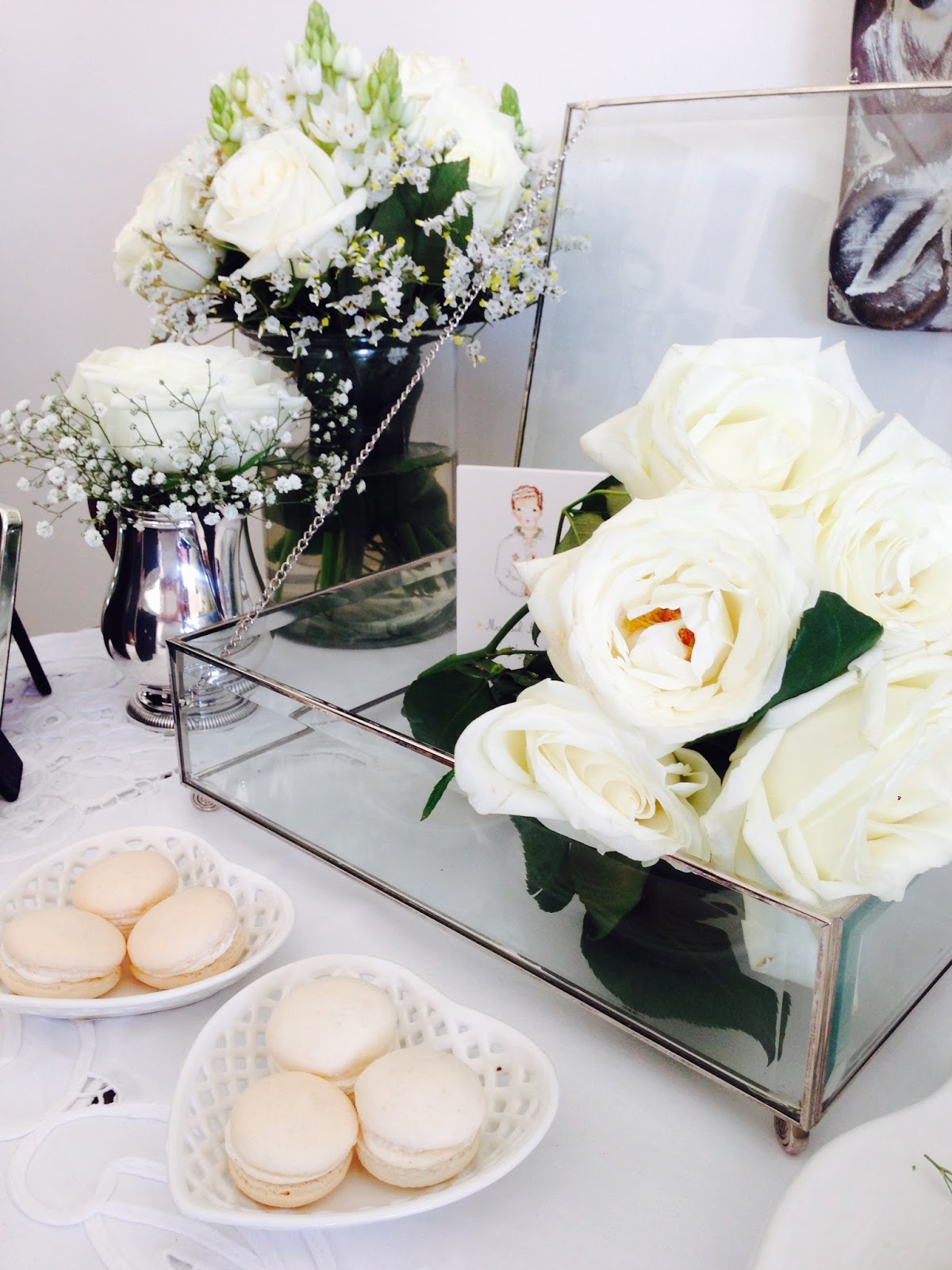 A decoração da mesa de doces foi toda em branco e pequenos apontamentos de prata. Este ano decidi usar mais flores que o habitual e as escolhidas foram as rosas e os beijinhos de mãe, ambas flores da época. Gostei imenso do resultado final.