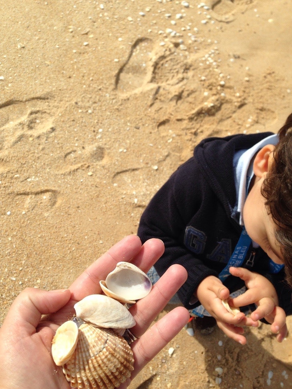 E assim na segunda lá fomos os cinco para a praia. O dia estava excelente, o mar de uma cor linda e o sol a brilhar. Os manos fizeram explorações na praia e jogaram à bola com o pai enquanto eu e o Francisco apanhámos conchinhas.
