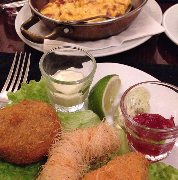 No sábado, fomos então experimentar o XL e adorámos. Só havia uma alternativa para começar porque é um misto de algumas das entradas do restaurante, um cogumelo panado, uma gamba despenteada e queijo brie panado, tudo acompanhado do respetivo molho. Para partilhar vieram ainda uns ovos mexidos com farinheira. Gostámos de tudo.