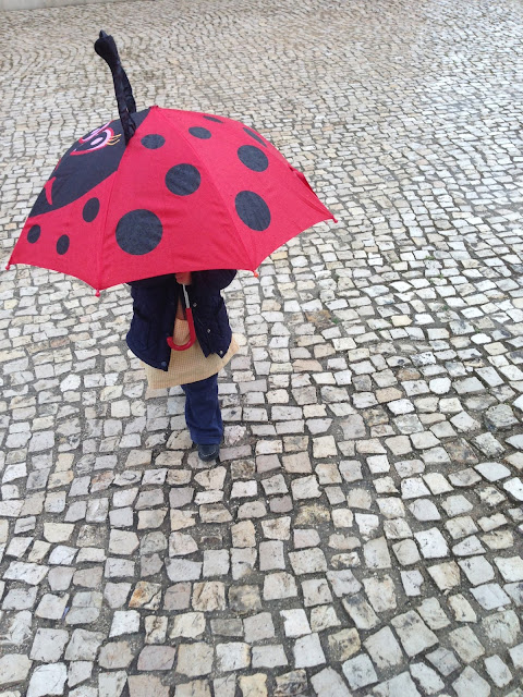 Agora, que já sou crescida ;) e sou mãe, olho para os meus filhotes e vejo a alegria deles nos dias em que chove a contrastar com o ar pesado dos adultos. Adoram sentir a chuva (claro que não os deixo à chuva durante horas!), ver as gotas a escorrer nos vidros do carro e acompanhar o percurso com o dedo, todo o ritual de abrir o chapéu de chuva e voltar a fechar e apanhar mais umas gotas de chuva. Gostam de sentir o fresquinho de cada gota e olhar para o céu a perceberem de onde vêm: