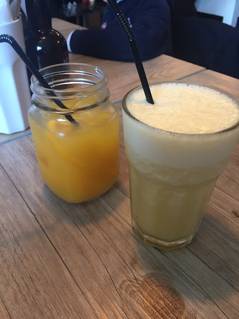 A decoração do restaurante é giríssima, gosto mesmo muito. Muito original e ao mesmo tempo acolhedora, sentimo-nos bem lá dentro. Os hamburgers são excelentes e os sumos naturais são excelentes. Eu escolho sempre o mesmo... New Yorker (com queijo, bacon, cebola caramelizada o ovo estrelado) com um sumo natural de abacaxi.